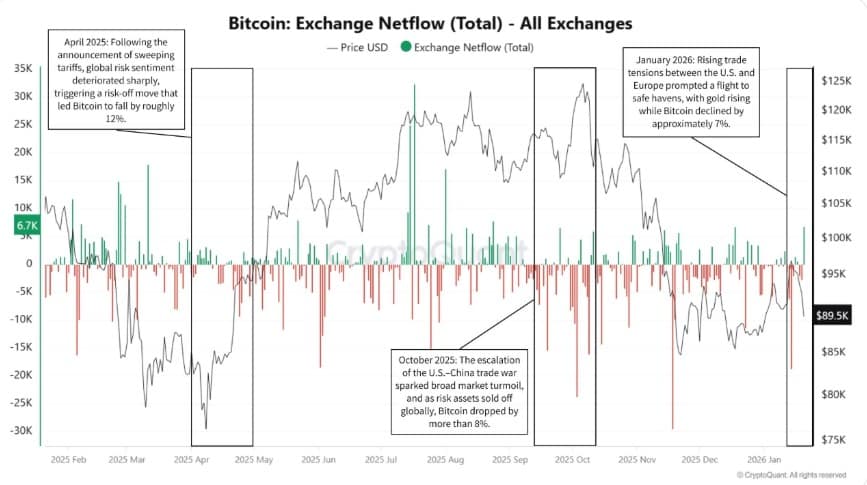 A Exitpump identificou clusters de delta negativo abaixo de US$ 91 mil, somando mais de US$ 300 milhões em pressão vendedora. Esse movimento reforça o momento de baixa, embora um short squeeze possa surgir se o BTC recuperar rapidamente a região de US$ 91 mil.