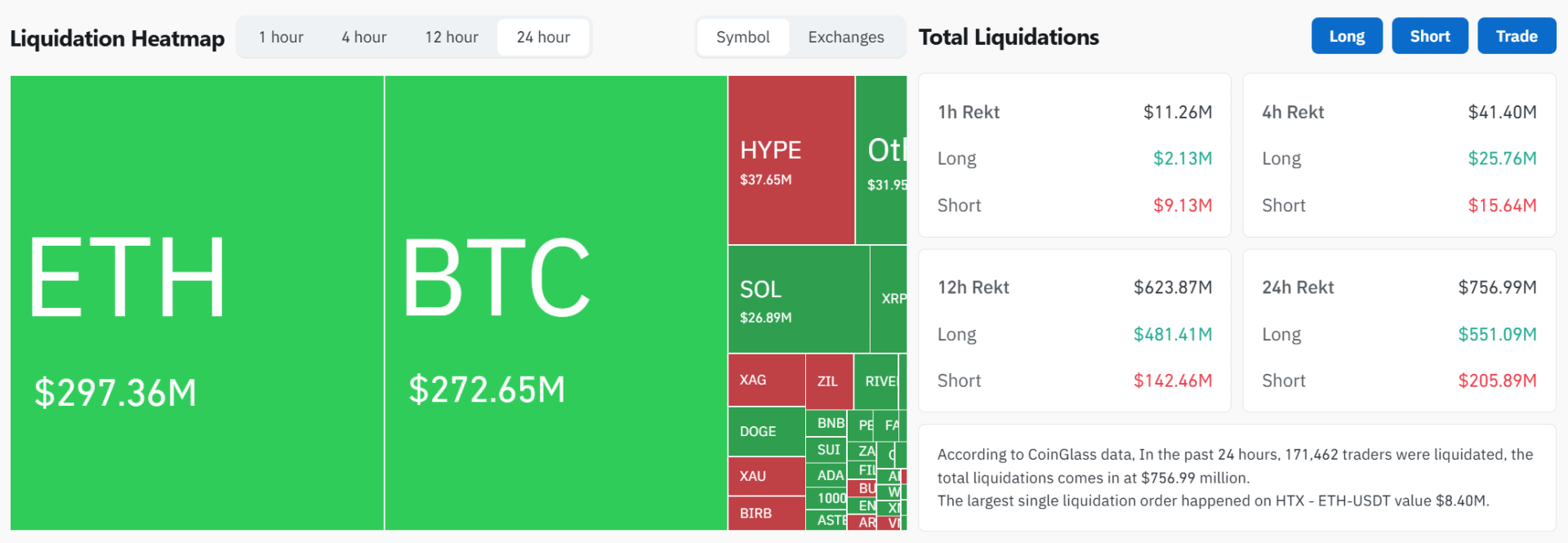 Mais de US$ 2,5 bilhões em posições foram liquidadas em apenas 48 horas, com US$ 700 milhões eliminados em um único dia, e isso revelou a dimensão da alavancagem excessiva no mercado. A maior parte dos cortes ocorreu em posições compradas, o que acelerou ainda mais o movimento de queda.