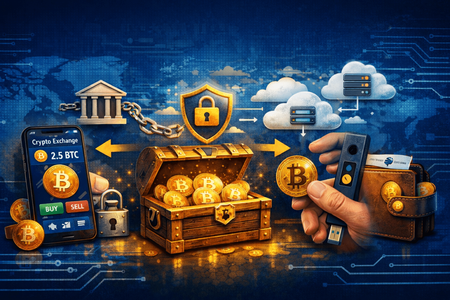 Muitas pessoas guardam Bitcoin em exchanges ou usam carteiras online de Bitcoin porque é simples: fazer login, negociar, enviar ou receber. Mas há um detalhe importante: