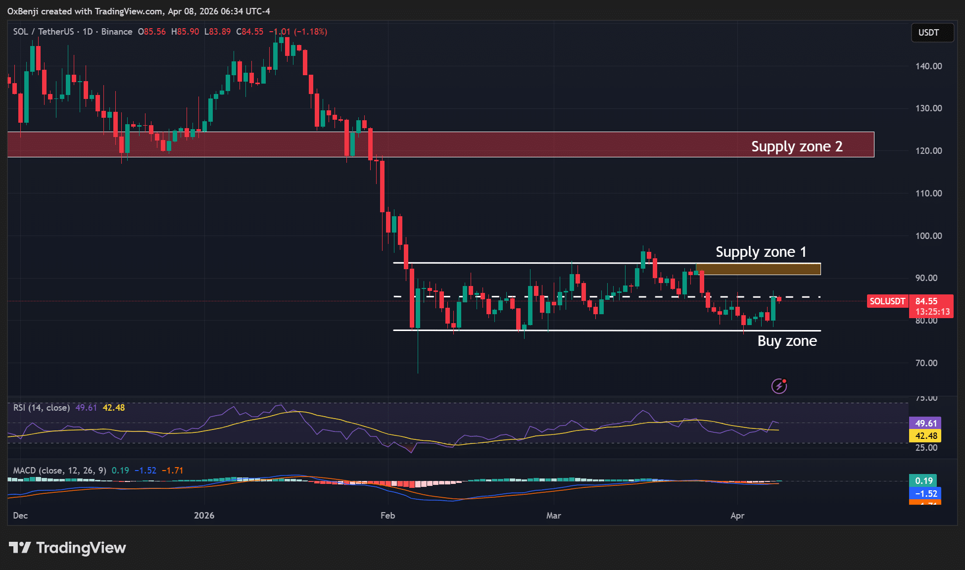 No entanto, até agora, os dados não mostram reversão clara. A SOL segue consolidada entre US$ 75 e US$ 93, sem força suficiente para iniciar uma tendência de alta consistente.