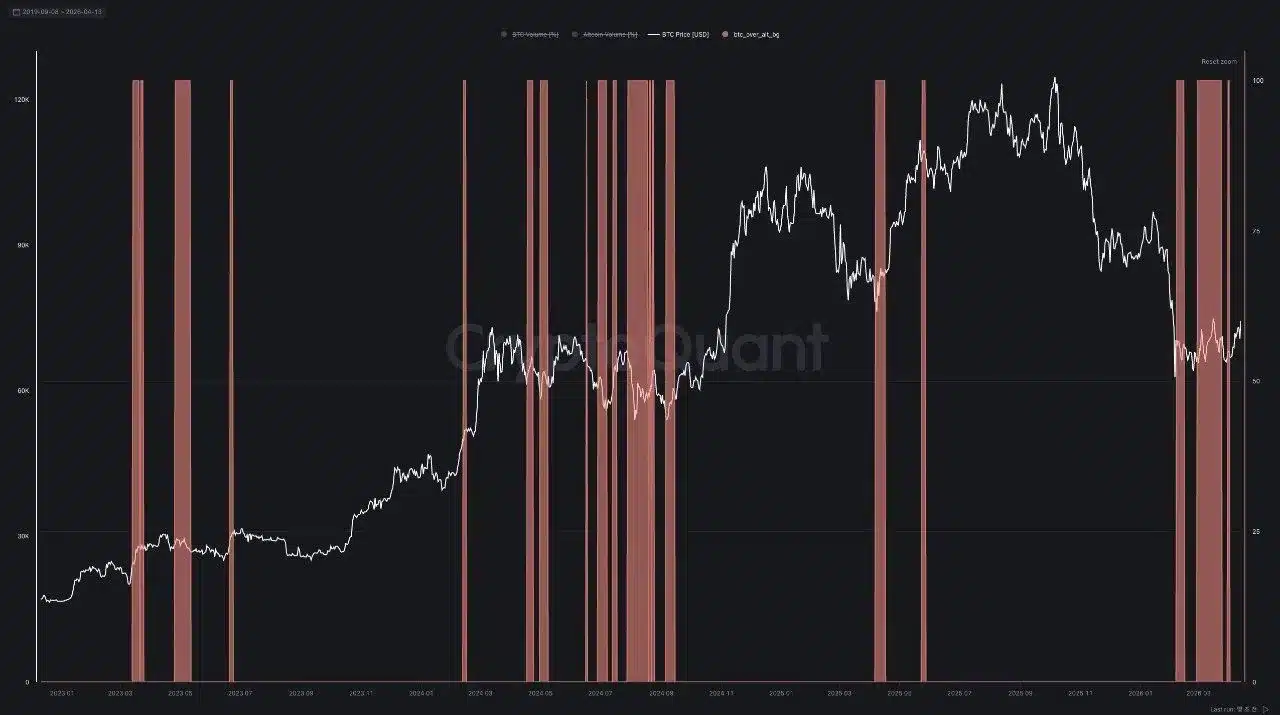 Dados de volume mostram que o Bitcoin manteve dominância sobre altcoins nos últimos dois meses. Apenas recentemente o volume de altcoins começou a se recuperar, sugerindo possível mudança na dinâmica do mercado. A rotação de capital entre Bitcoin e altcoins é observada de perto como indicador de apetite por risco no setor.