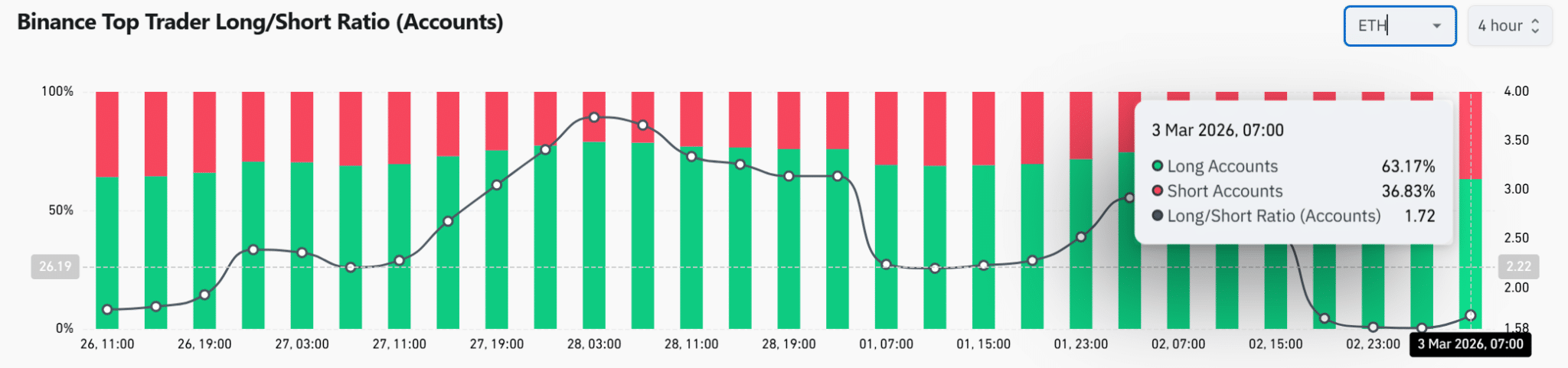 Entre os principais traders da Binance, a relação 1,72 entre comprados e vendidos reforça o viés otimista. Ainda assim, uma concentração longa demais pode gerar vulnerabilidade caso o preço retorne para US$ 1.800.