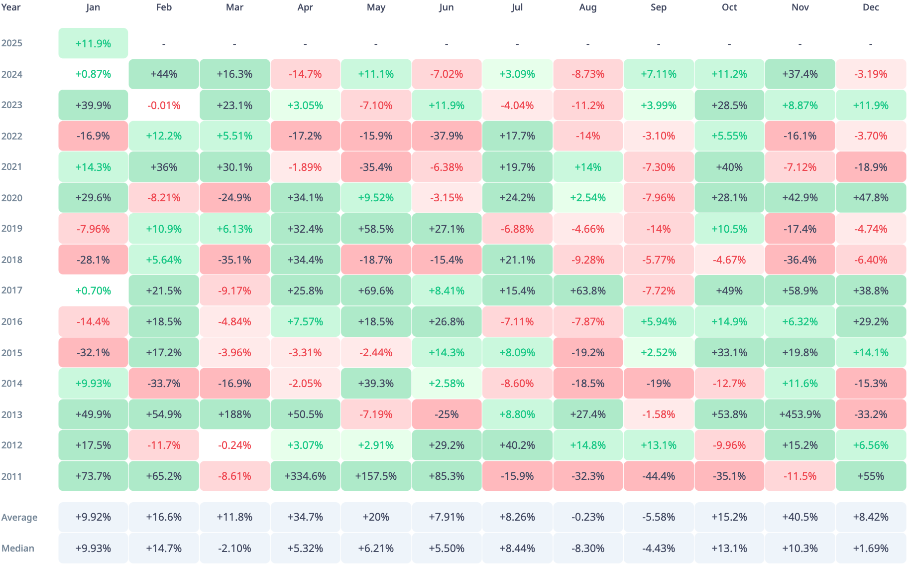 Historicamente, fevereiro tem sido um ótimo mês para o Bitcoin . Olhando para as estatísticas do CryptoRank de 2011 a 2024, podemos ver um ganho mensal médio de 16,6%, com uma lucratividade mediana de 14,7%. Então, se virmos um aumento semelhante em fevereiro de 2025, o preço do Bitcoin pode ir acima de $ 120.000.
