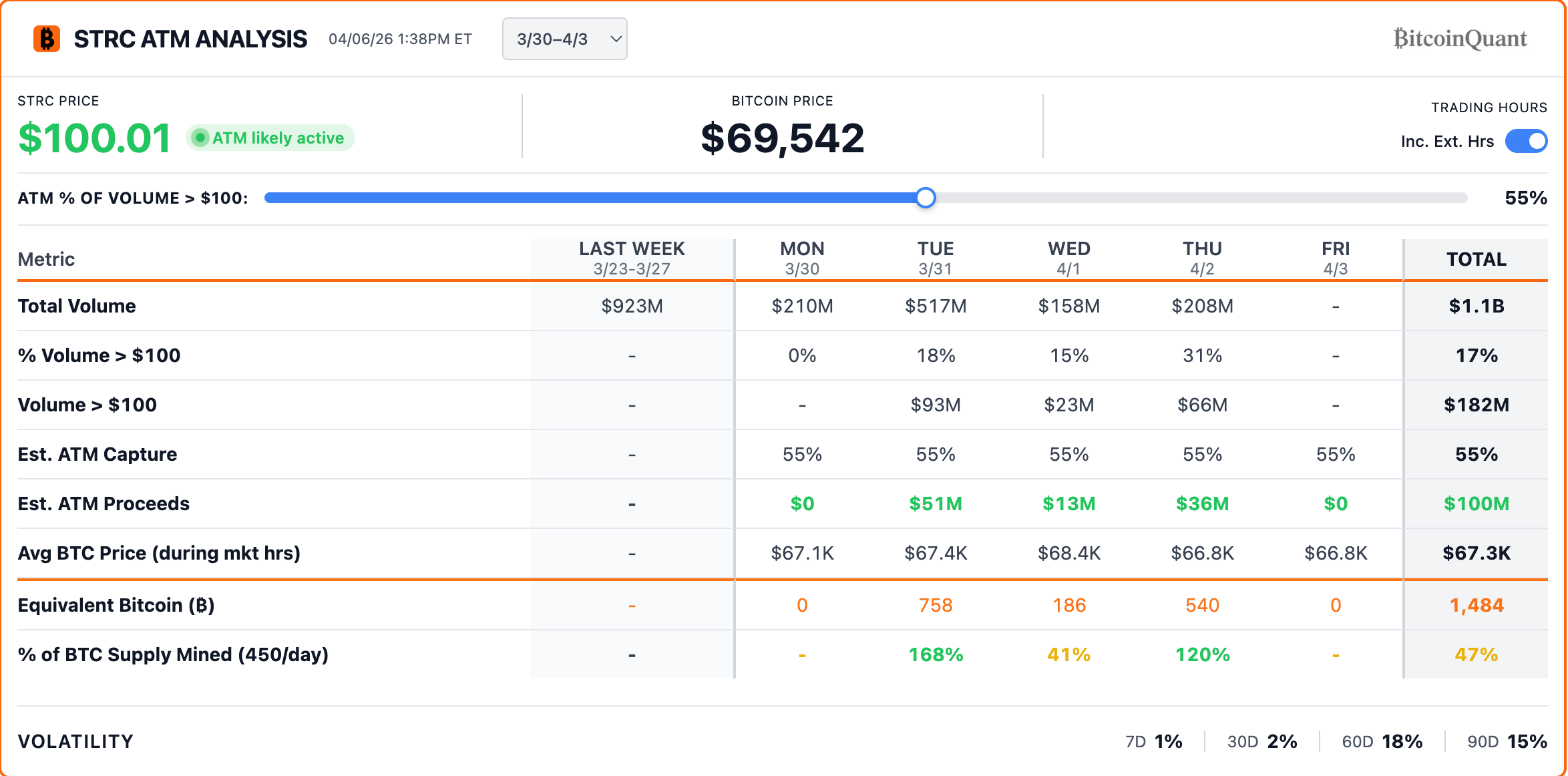 Análise de vendas no mercado da STRC. Fonte: BitcoinQuant.CO