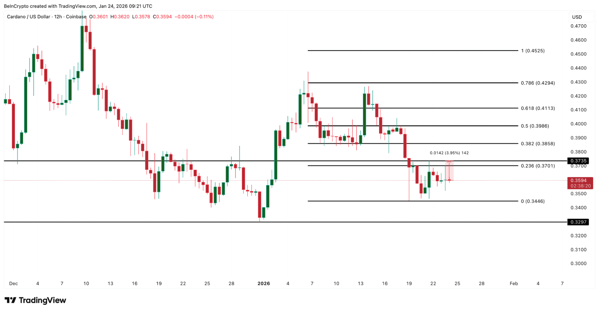 Na análise técnica, o Cardano saiu de uma faixa estreita e opera agora abaixo de uma linha de tendência descendente. Analistas apontam que um retorno acima de US$ 0,355 poderia permitir um repique de curto prazo para a faixa entre US$ 0,370 e US$ 0,380, porém, uma queda firme abaixo de US$ 0,350 provavelmente abriria espaço para US$ 0,340 ou até níveis menores.