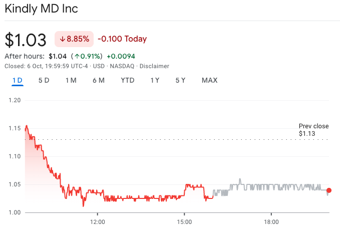 A Kindly MD foi a empresa de tesouraria de Bitcoin com pior desempenho na segunda-feira. Fonte: Google Finance