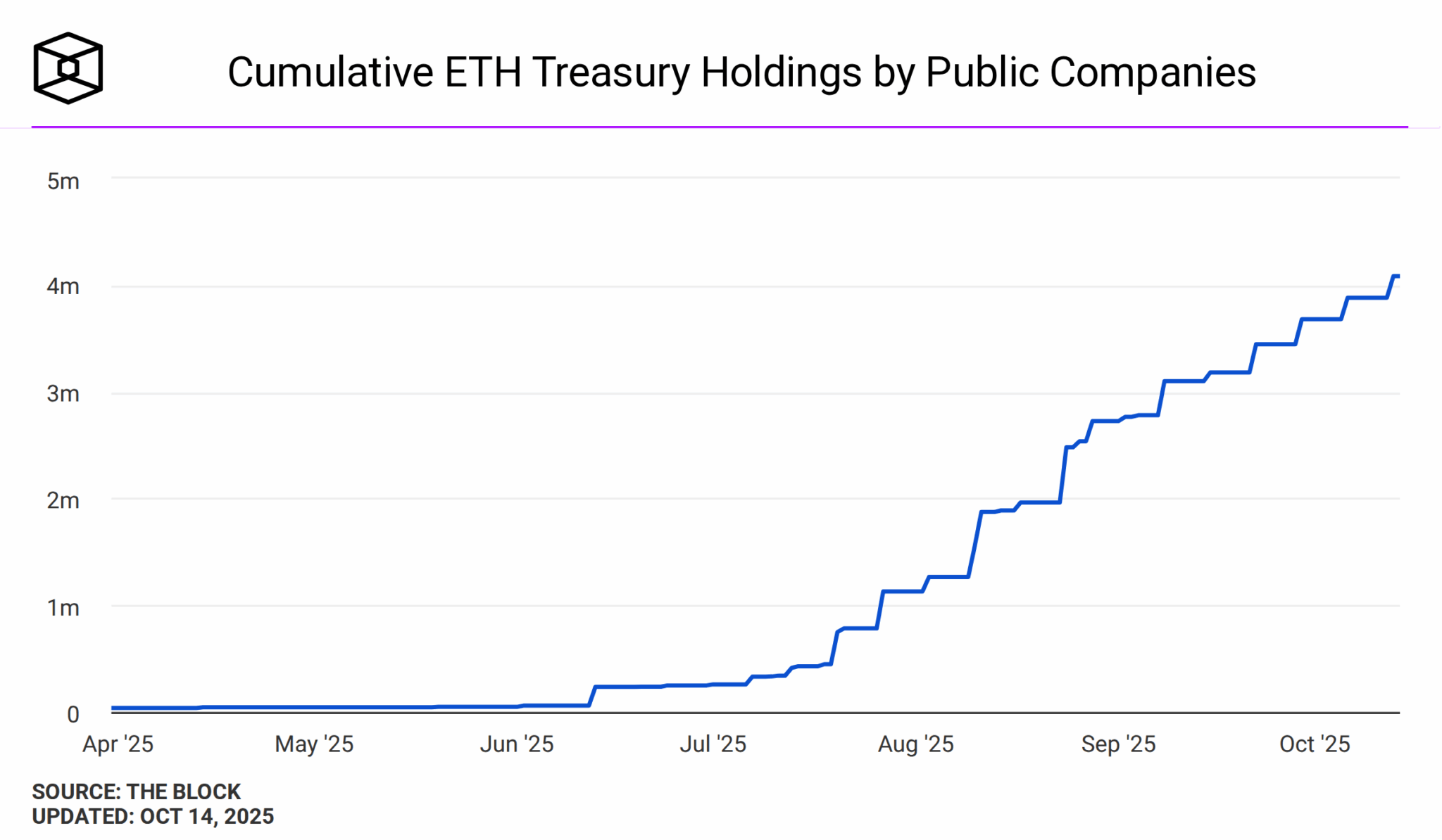 Empresas de capital aberto também reforçam suas posições. Estimativas indicam que elas detêm mais de 12% de todo o fornecimento de Ethereum. A Bitmine, liderada por Tom Lee, ampliou sua participação para US$ 12 bilhões, com a meta de controlar 5% dos tokens em circulação.