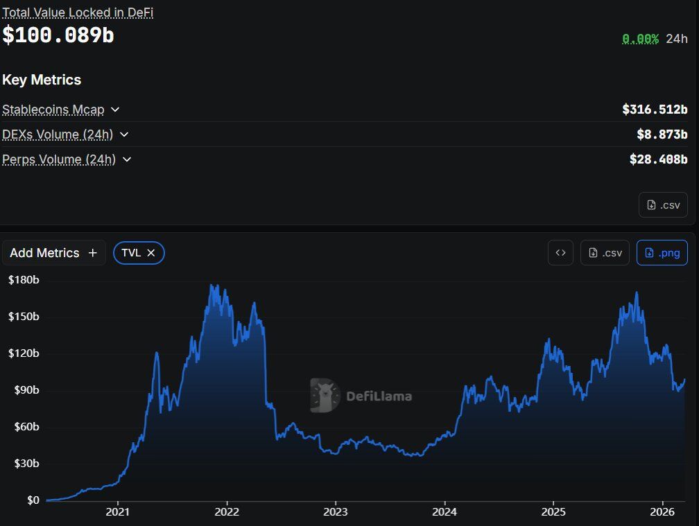 De acordo com dados da DefiLlama, o valor total bloqueado (TVL) alcançou US$ 100,089 bilhões. O número marca a primeira vez desde o início de fevereiro que o ecossistema rompe novamente essa barreira simbólica. Portanto, o patamar reacende expectativas sobre continuidade da recuperação.