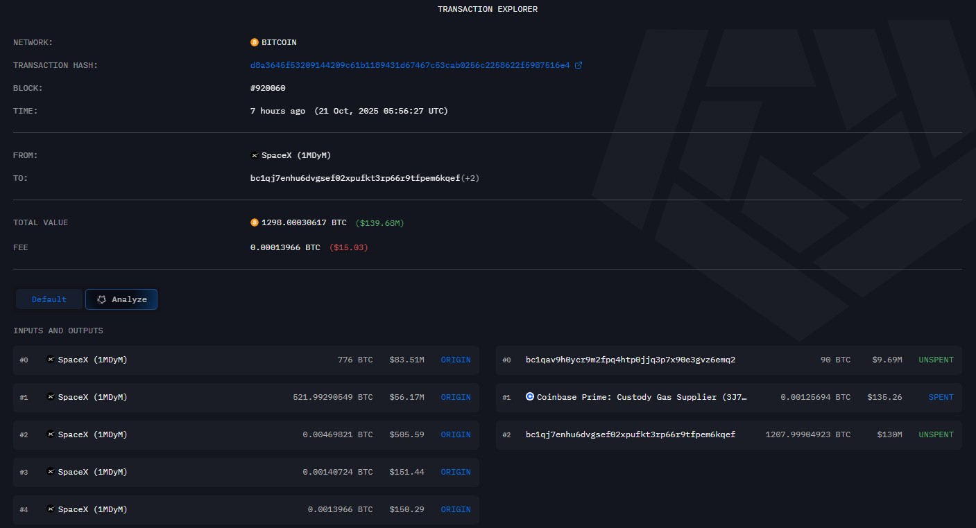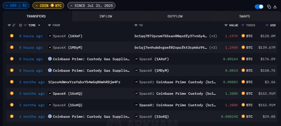 - SpaceX movimenta 2.495 bitcoins e agita o mercado