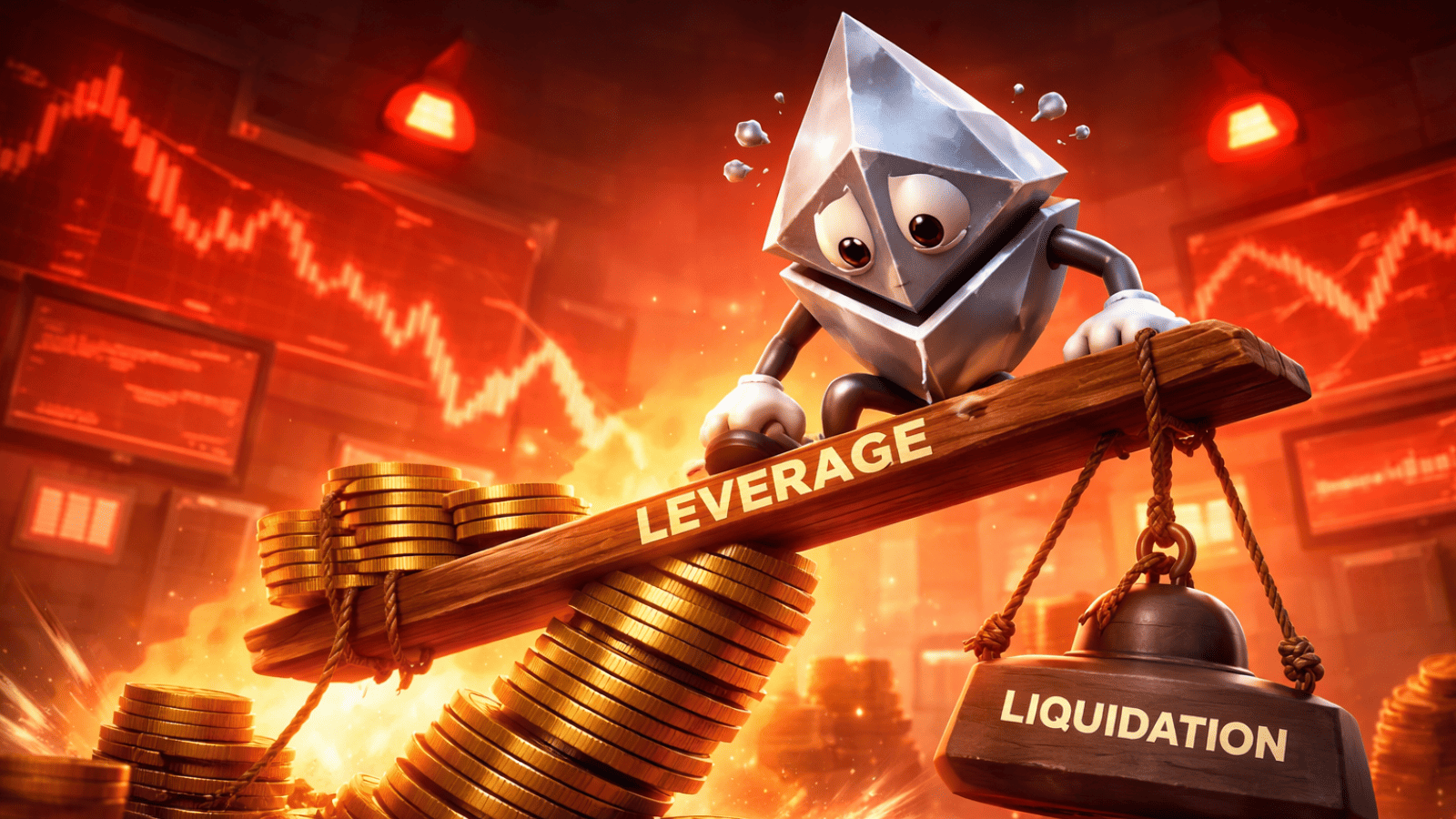 Ethereum atinge recorde de alavancagem e eleva risco de liquidações no mercado.