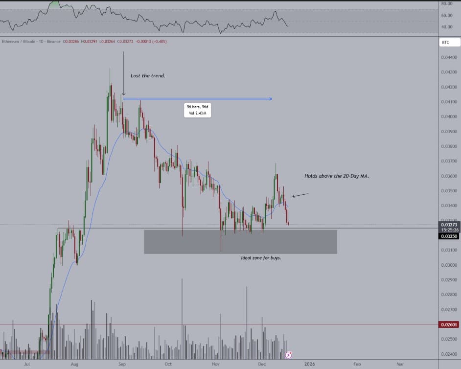 - Fraqueza frente ao Bitcoin aumenta pressão sobre o Ethereum