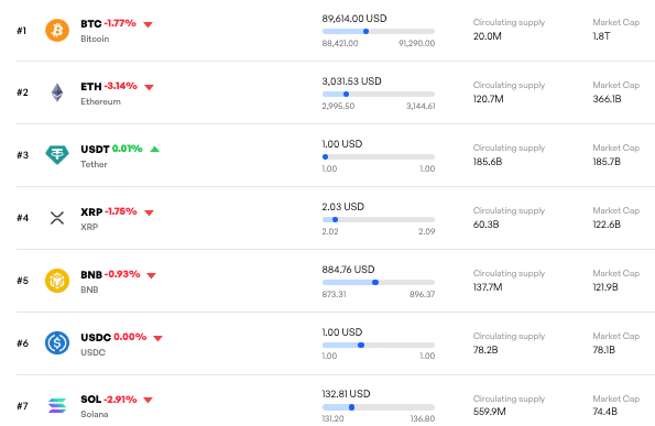 Enquanto isso, o Bitcoin está sendo negociado a US$ 89.614. O Ethereum está negociado em US$ 3.050, e o BNB ficando em US$ 884,76. O XRP retrocedeu 1,75%, para US$ 2,03, e o Solana está negociado a US$ 133,50. Esses números reforçam o impacto generalizado do enfraquecimento do mercado.