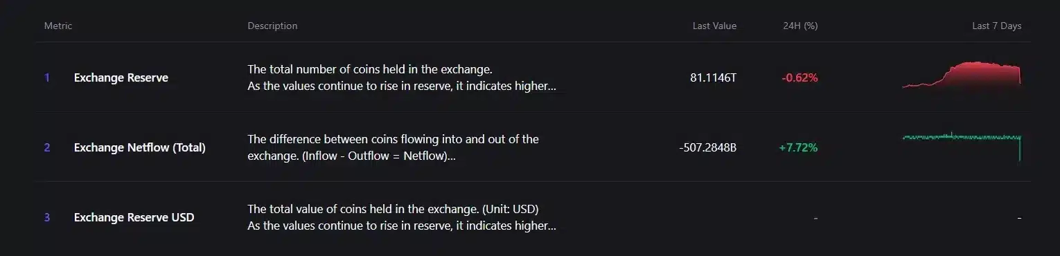 O fluxo de saída das exchanges também chama atenção. Com 507 bilhões de SHIB transferidos para carteiras privadas em um dia, o padrão sugere que investidores preferem manter posições de longo prazo. Essa dinâmica reduz a pressão vendedora imediata e pode facilitar movimentos altistas quando a demanda aumentar.