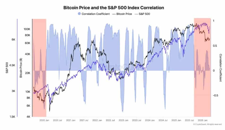 Dados da CryptoQuant revelam que o período atual marca o desacoplamento mais prolongado entre Bitcoin e S&P 500 em mais de quatro anos. Alex Adler, analista da plataforma, aponta para a métrica de Realized Cap de 30 dias como principal culpada.