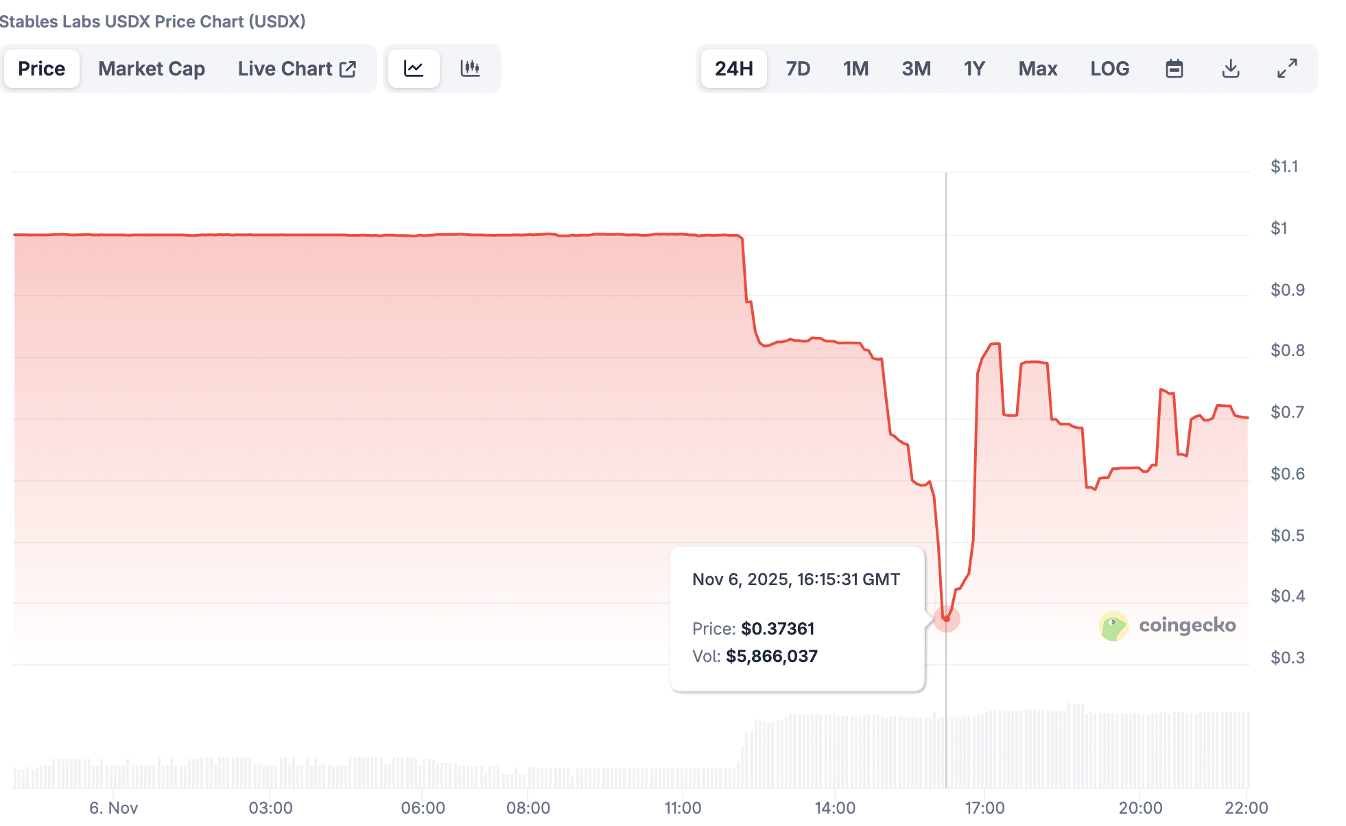 A USDX, uma das stablecoins mais promissoras do ecossistema DeFi, perdeu sua paridade com o dólar americano e despencou para US$ 0,37, acumulando queda de 63% em poucas horas. O colapso, registrado em 6 de novembro, abalou a confiança dos investidores e reacendeu o debate sobre a segurança das stablecoins emergentes.