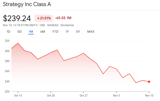 Apesar disso, o cenário não é apenas de otimismo. As ações da MSTR caíram mais de 27% em um mês, refletindo a retração do Bitcoin após recentes recordes históricos de valorização.