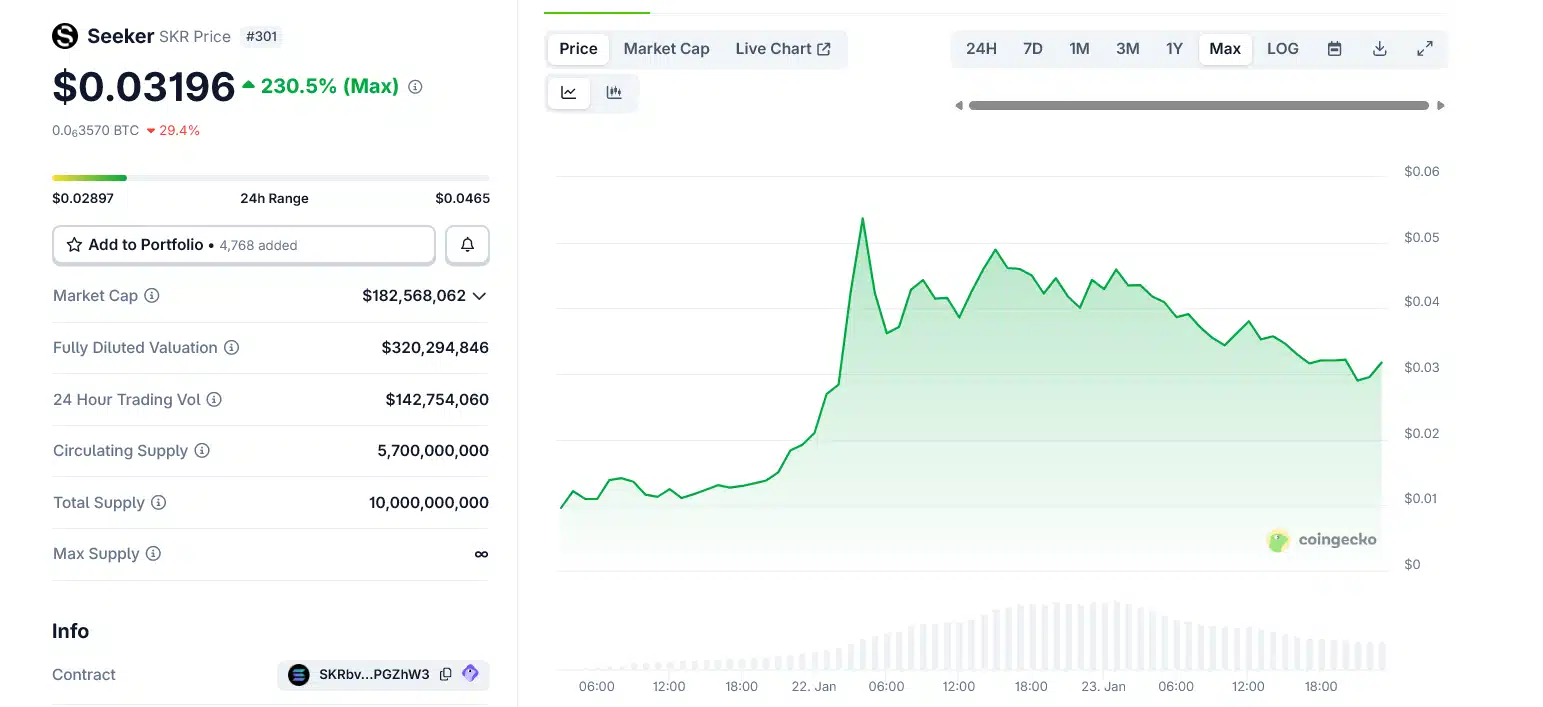 - Alta do $SKR reflete impacto imediato do novo smartphone Seeker
