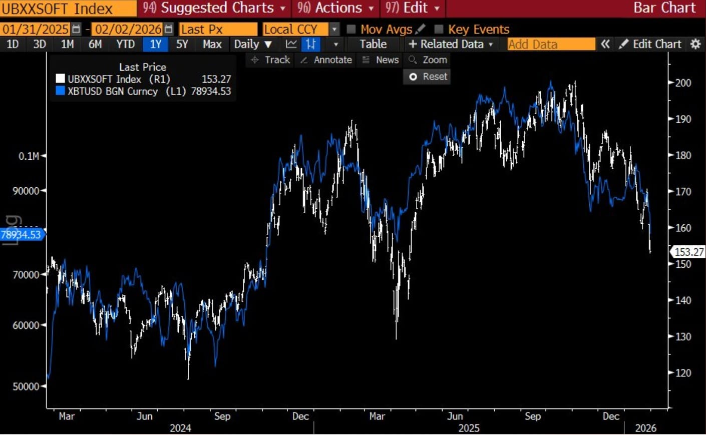 Ao mesmo tempo, a forte alta do ouro drenou liquidez marginal. Isso deixou menos espaço para sustentar Bitcoin e ações sensíveis ao risco.