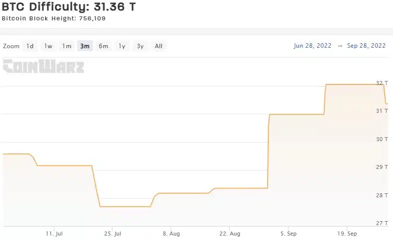 A dificuldade de mineração do bitcoin estava registrando valores crescentes desde 22 de julho, portanto estava se mantendo em elevação por mais de dois meses, período ao qual inclusive registrou seu topo histórico.