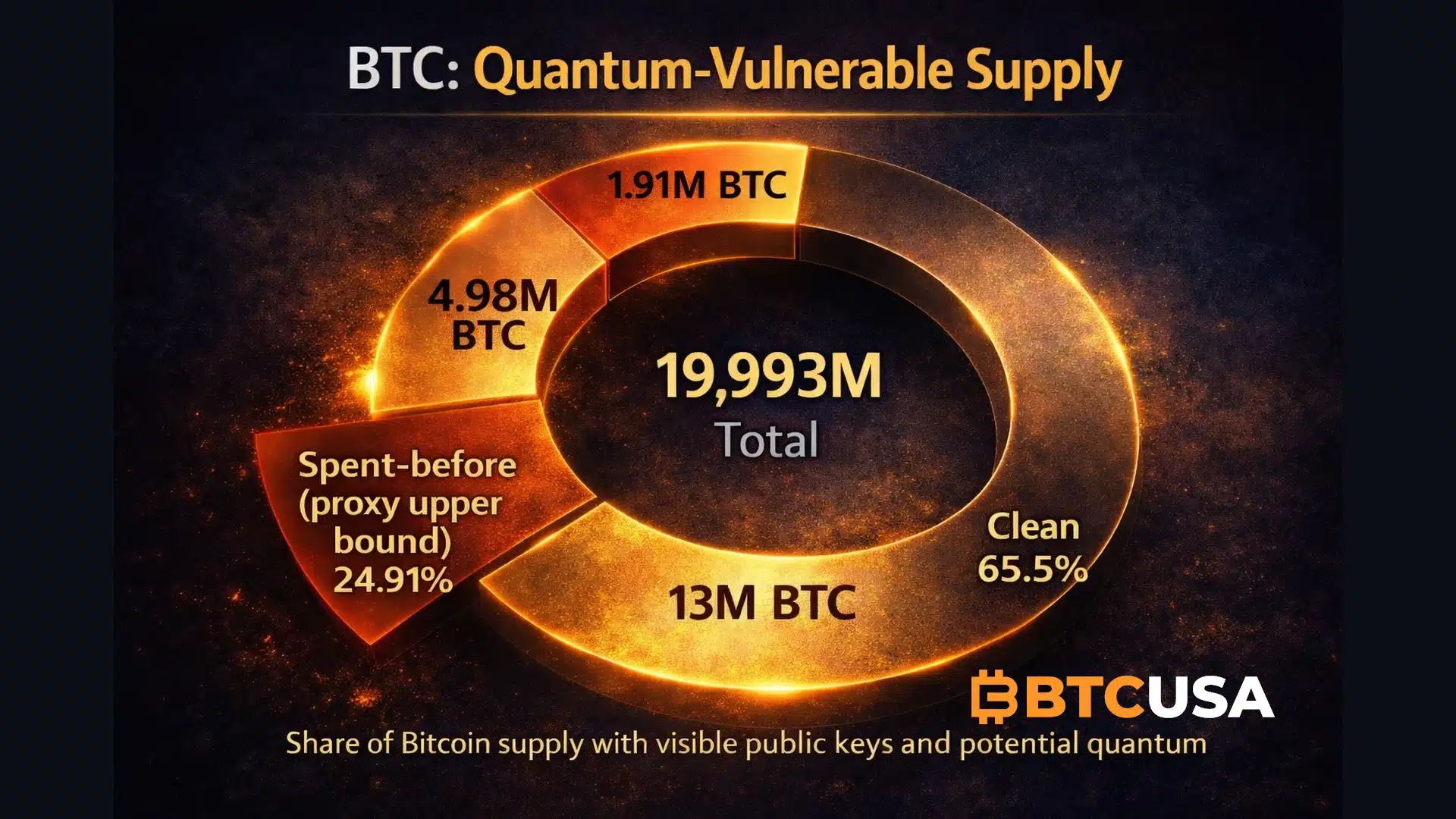 Hoje, estimativas sugerem que até 6,89 milhões de BTC já tiveram chaves públicas expostas em algum momento. Esse montante inclui 1,91 milhão de BTC em saídas P2PK legadas e quase 5 milhões expostos por transações antigas. Uma parcela relevante, cerca de 3,4 milhões de BTC não se move há mais de dez anos, o que representa um grande volume em risco imediato.