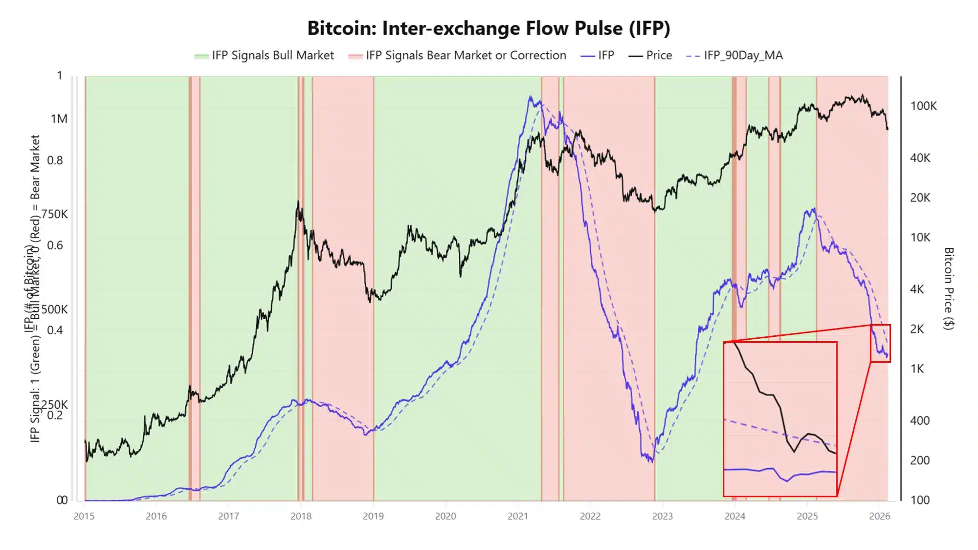 No momento, a queda da diferença entre o IFP e sua média móvel de 90 dias revela uma transformação estrutural já em andamento. A confirmação dependerá de fluxo consistente e crescente para derivativos, indo além das movimentações concentradas das baleias.