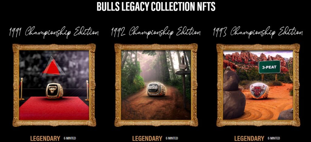 A Bulls Legacy Collection NFTS traz em destaque os seis anéis icônicos do Campeonato Mundial da equipe.
