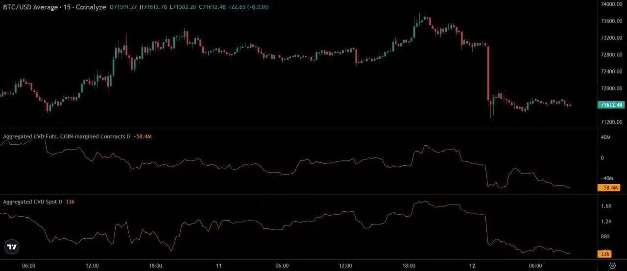 Ao mesmo tempo, o CVD do mercado à vista também caiu, reforçando o cenário de fraqueza. Ou seja, não se trata apenas de pressão especulativa, mas de venda real no mercado spot.