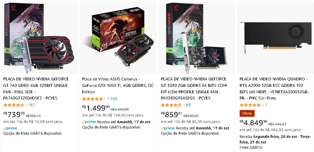 Nas páginas da web de empresas de e-commerce como Amazon.com e Mercado Livre pode-se encontrar modelos como o Nvidia RTX 3090 com até 40% de desconto.