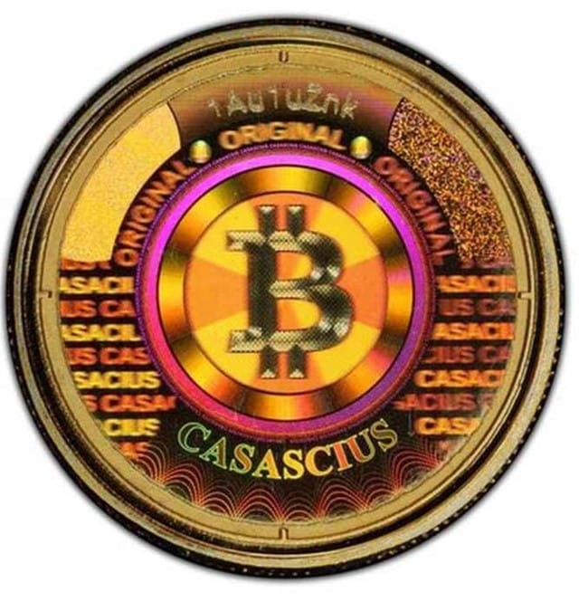 Elas foram criadas pela empresa de Mike Caldwell, a “moedas Casascius”, que produziu moedas de Bitcoin de: 0,1; 0,5; 1; 5; 10; 25; 100; e 1.000 unidades de Bitcoin.