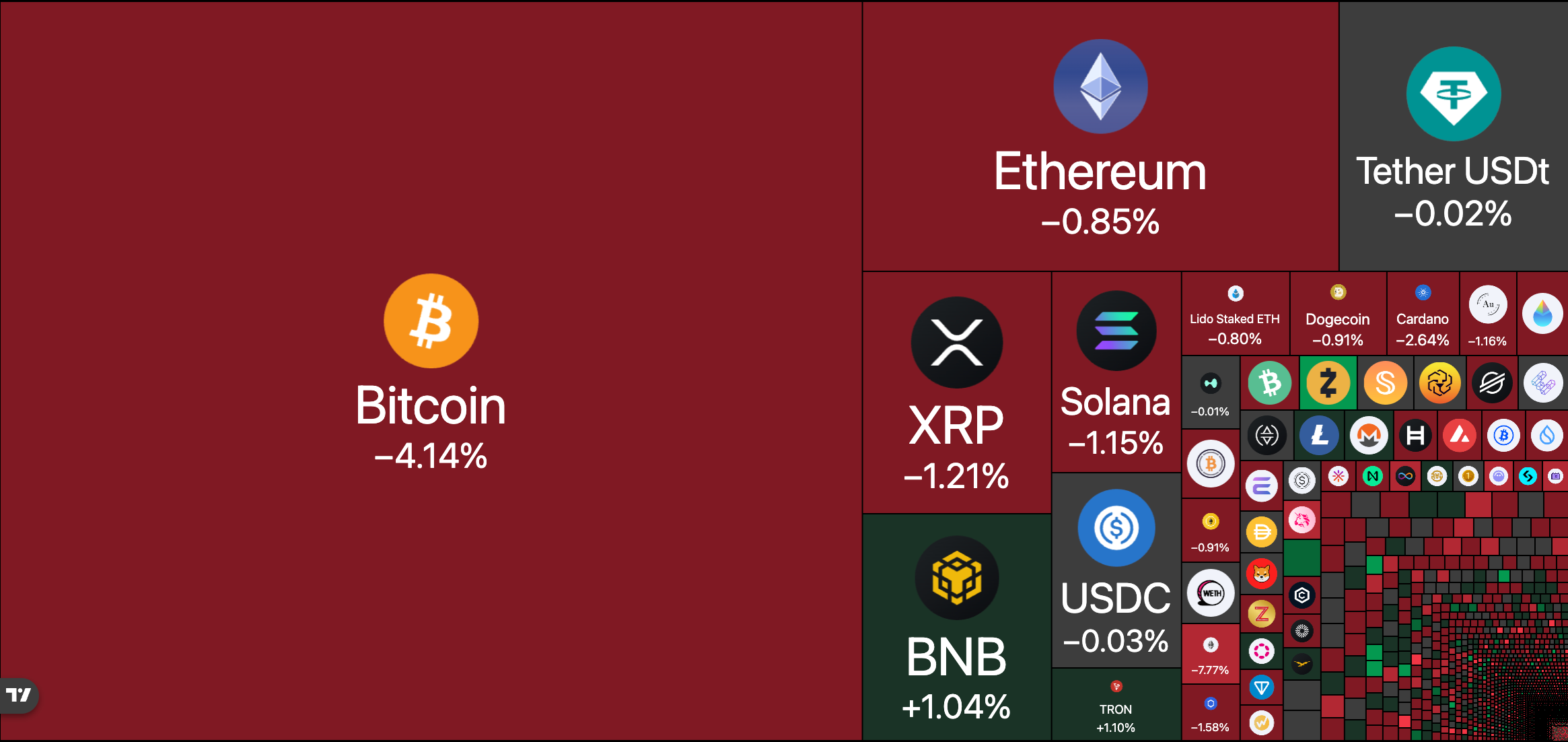 O mercado de criptomoedas continua em queda, estendendo o declínio de outubro. Fonte: TradingView
