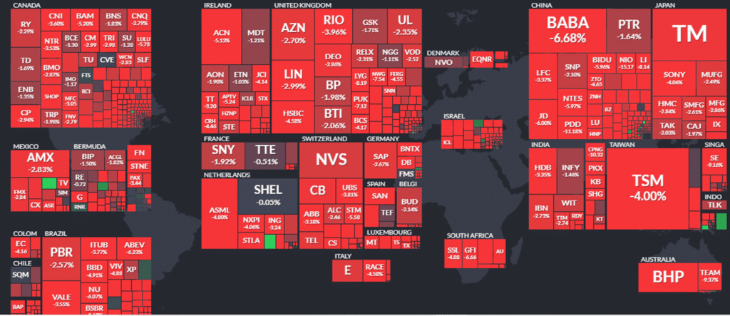 O Dow Jones, por exemplo, registrou a sua pior queda em praticamente 2 anos, e teve o S&P 500 caindo -3,6% e a Nasdaq caindo -5%.