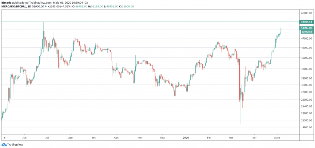 Além de que, em 2020, a valorização do BTC frente ao real já ultrapassou 78% até agora.