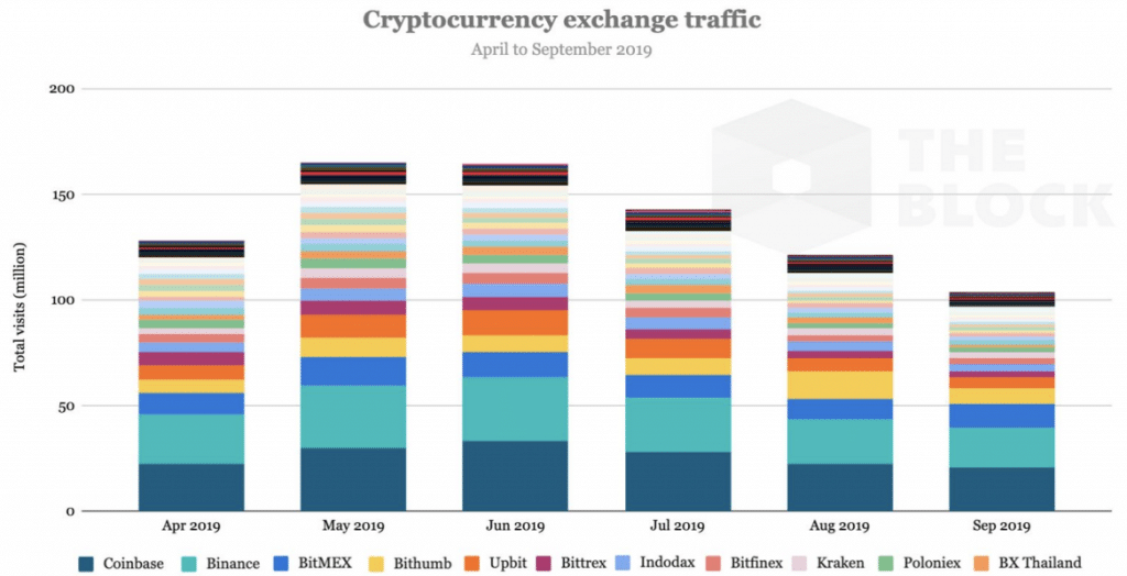 Larry Cermak, do The Block, analisou o tráfego mensal de abril a setembro de 37 exchanges e descobriu uma queda de 37% desde de junho, mês com maior número de tráfego registrado no período analisado, apontando para um declínio no interesse dos investidores de varejo.