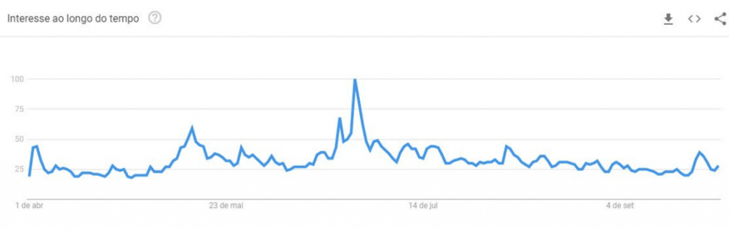 A diminuição no tráfego também coincidiu com a queda no volume negociado pelas exchanges, e com a queda do interesse pelo termo “Bitcoin” no Google Trends.